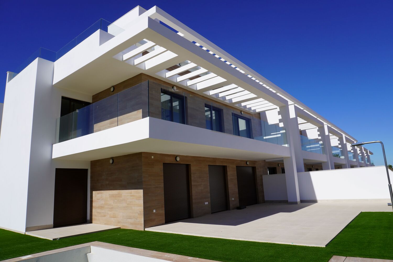 Moderne Villa’s met 4 slaapkamers en 3 badkamers met een grote tuin rondom van minimaal 200 m2 op het mooie Vistabella Golf Resort. Het is een afgesloten en bewaakte urbanisatie. En natuurlijk een eigen zwembad met buitendouche.