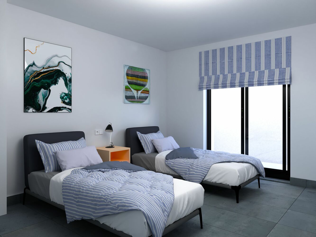 Smaakvolle gelijkvloerse Villa’s van 86 m2 en voorzien van 3 slaapkamers en 2 badkamers waarvan 1 en suite. De moderne living met open keuken en de overige ruimtes zijn erg mooi afgewerkt met hoogwaardige materialen. Bij deze Villa’s is de keukenapparatuur inclusief, evenals de verlichting binnen en buiten, de pre-installatie van de airco en de tuinaanleg. De woningen zijn voorzien van een eigen oprit met elektrische poort en een zeer groot solarium met buitenkeuken van 77 m2. Een zwembad met buitendouche en waterval maakt het helemaal af.